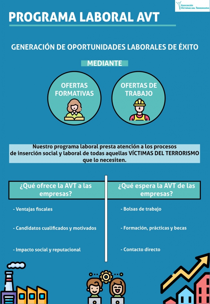 Desde la Asociación Víctimas del Terrorismo (AVT) impulsamos un programa de inserción laboral dirigido a nuestros asociados/as, con el objetivo de facilitar su integración social y profesional.